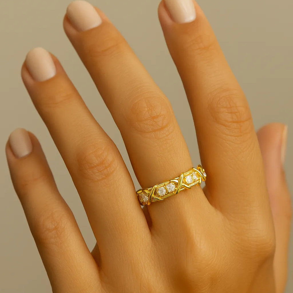 Ao centro, uma moissanite de 1.0 quilate exibe um brilho limpo e profundo, revelando um jogo de luzes que evoca as constelações noturnas. O aro em prata 925 ou banhado em ouro 18k confere sofisticação atemporal, adaptando-se com perfeição a qualquer estilo.